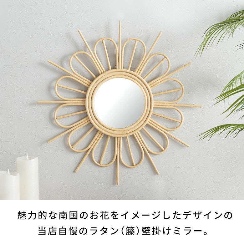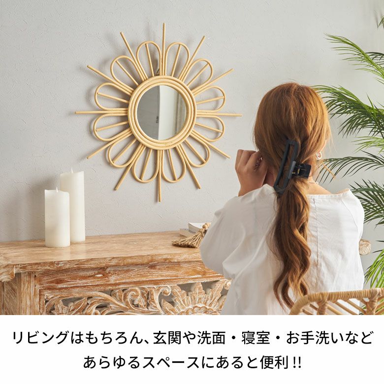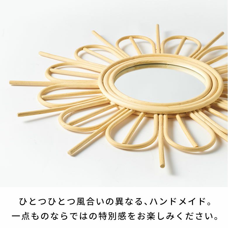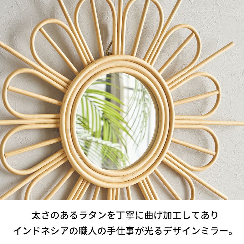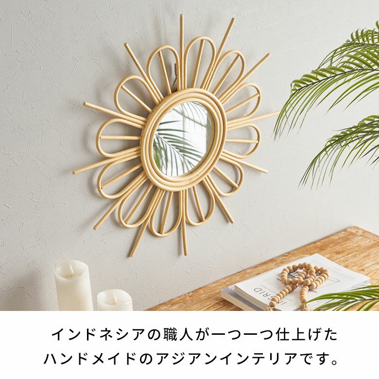 ・バリ島で編まれた天然素材ラタンの壁掛けミラー