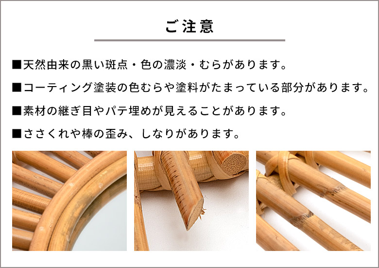 斑点や節を残したラタンに、ツヤ感のあるニスでコーティング。 |