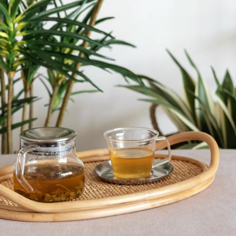 しなやかで硬く、曲線をキレイに表現できるラタン(籐)を使用したトレイ。