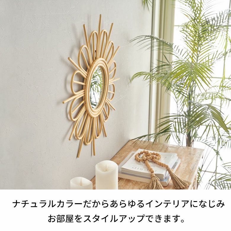 掛け鏡 円形 小さめ コスメミラー 籐 アンティーク風 壁掛けミラー 丸型 編み込み柄 ラタン Sサイズ 直径22cm [91328]【 ミラー 鏡 丸 ウォールミラー インテリアミラー 天然素材 壁掛け 吊り下げ アンティーク調 化粧鏡 おしゃれ メイクアップミラー シンプル アジアン雑貨 アジアン 雑貨 リゾート 】