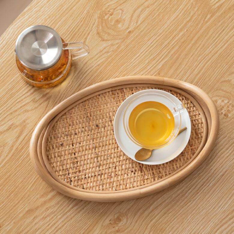 デコレーショントレイ 小物入れ 軽い 丈夫 安定 カフェ 軽量 お盆 トレー Mサイズ 大きい オーバル ラタン 籐 約 W 39.5cm D 28cm H 6cm [13962-m]【 ハンドル付き 持ち手 ナチュラル 楕円 長手盆 サービストレイ ランチトレー トレイ ランチョンマット ランチトレー かわいい おしゃれ 北欧 リゾート アジアン 雑貨 バリ島 】