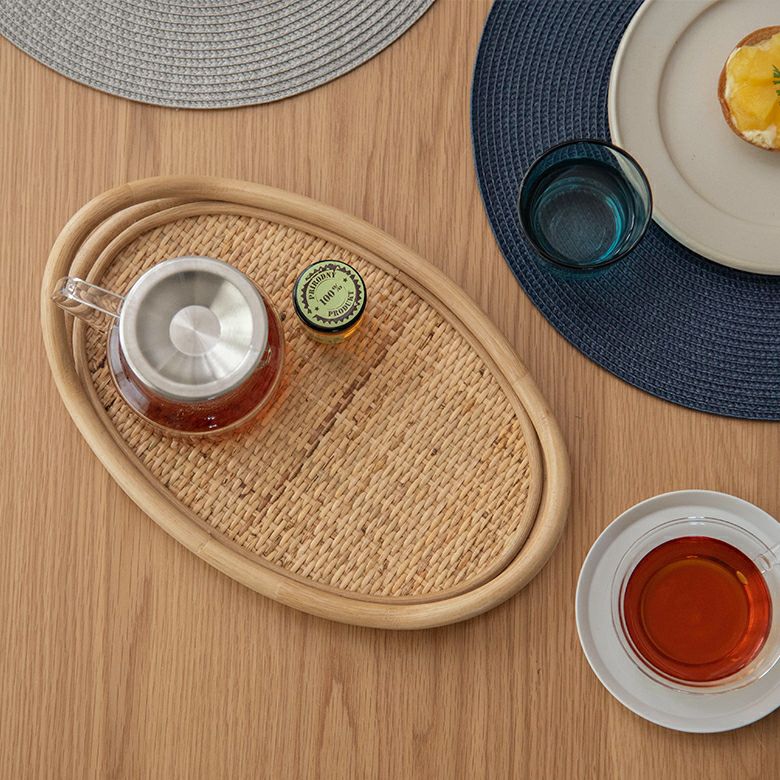 デコレーショントレイ 小物入れ 軽い 丈夫 安定 カフェ 軽量 お盆 トレー Sサイズ 小さい オーバル ラタン 籐 約 W 35.5cm D 23.5cm H 5cm [13962-s]【 ハンドル付き 持ち手 ナチュラル 楕円 長手盆 サービストレイ ランチトレー トレイ ランチョンマット ランチトレー かわいい おしゃれ 北欧 リゾート アジアン 雑貨 バリ島 】
