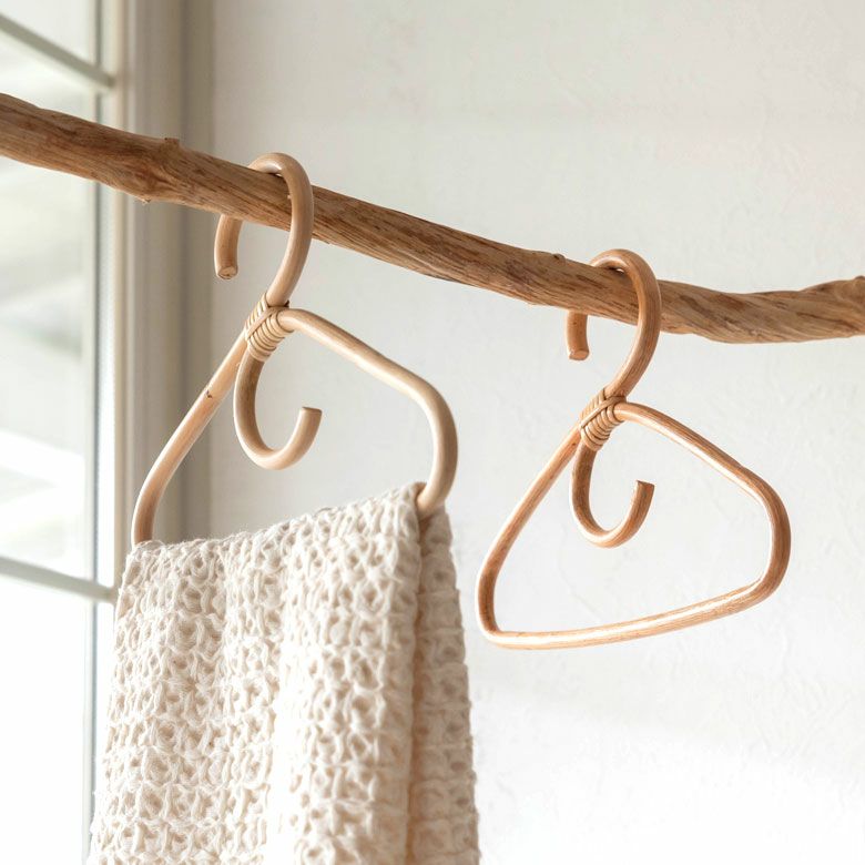 ラタンハンガー 見せる収納 ディスプレイ カフェ 店舗 軽量 ハンガー ラタン 籐 Sサイズ 小さい ミニ ナチュラル ライトブラウン 約 W 26cm D 1cm H 18cm [13958]【 タオルハンガー キッズハンガー ベビーハンガー キッズ 子供用 赤ちゃん ベビー 子供部屋 軽い 丈夫 かわいい おしゃれ 北欧 リゾート アジアン 雑貨 バリ島 】