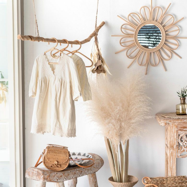 ラタンハンガー 見せる収納 ディスプレイ カフェ 店舗 軽量 ハンガー ラタン 籐 Sサイズ 小さい ミニ ナチュラル ライトブラウン 約 W 26cm D 1cm H 18cm [13958]【 タオルハンガー キッズハンガー ベビーハンガー キッズ 子供用 赤ちゃん ベビー 子供部屋 軽い 丈夫 かわいい おしゃれ 北欧 リゾート アジアン 雑貨 バリ島 】
