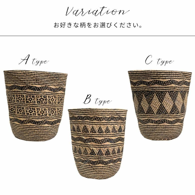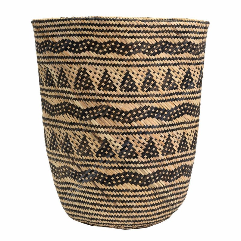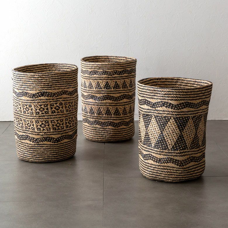 トライバルな柄と細かい模様が美しいラタン製のラタン製バスケット。