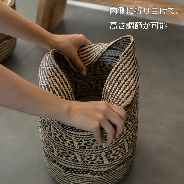 ・上径26cm、高さ38cmの大きさで、しなやかなラタン素材を使用