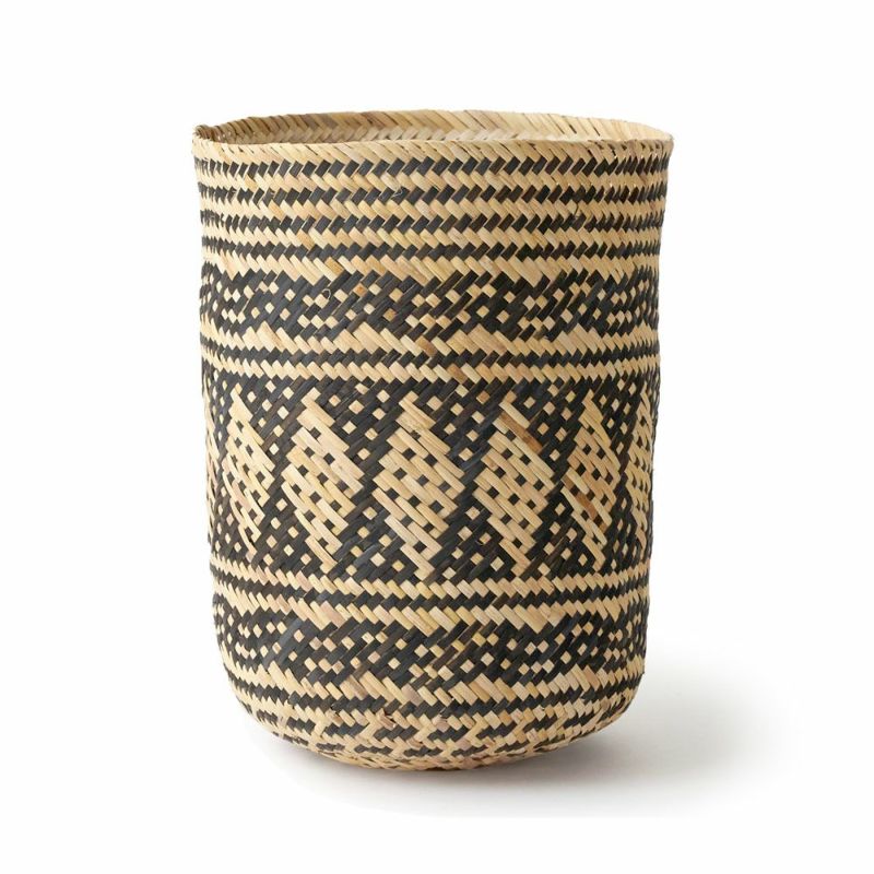 エキゾチックな魅力を感じる印象的な模様で、インテリア性の高いバスケット。