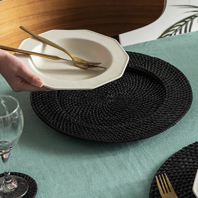 ラタンを染め上げ、編まれたチャージャープレート。