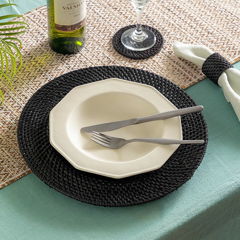 洗練されたテーブルコーディネートを作る、エスプレッソブラックカラーのラタンアイテム。