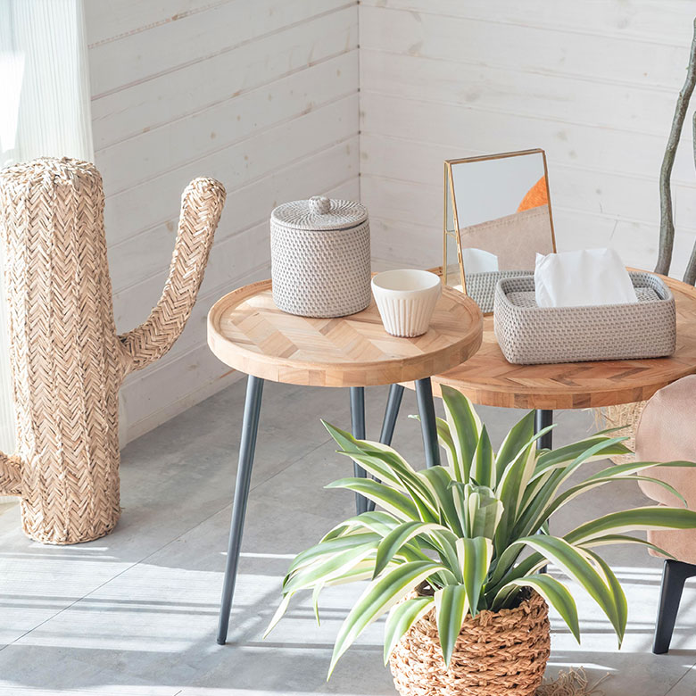 ラタンの素材感を活かしたナチュラルは、リゾートインテリアや植物とも相性抜群。