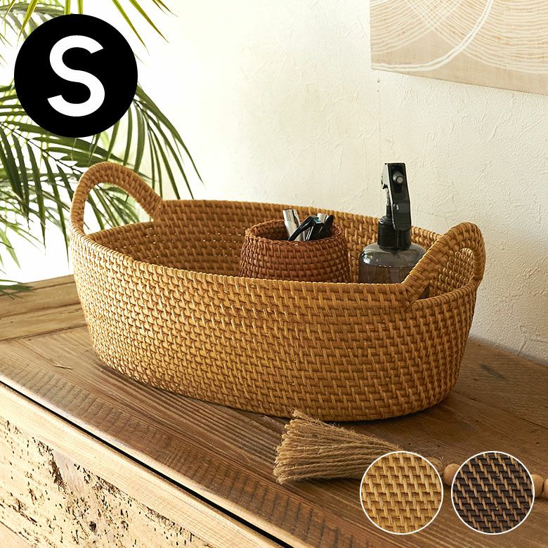 カラーは、ラタンそのものの自然な風合いを楽しめるナチュラルと、落ち着いた深みのある色合いがアジアンムードたっぷりなダークブラウンの2色展開。数多くのラタンバスケットを取り扱うアジア工房が自信を持っておすすめする新シリーズです。サイズはS・M・Lの3種類。ハンドル付きデザインなので、引き出したり持ち運んだりもラクラク!用途に合わせてサイズ違いを一緒に使うと、インテリアに統一感が生まれておしゃれに。