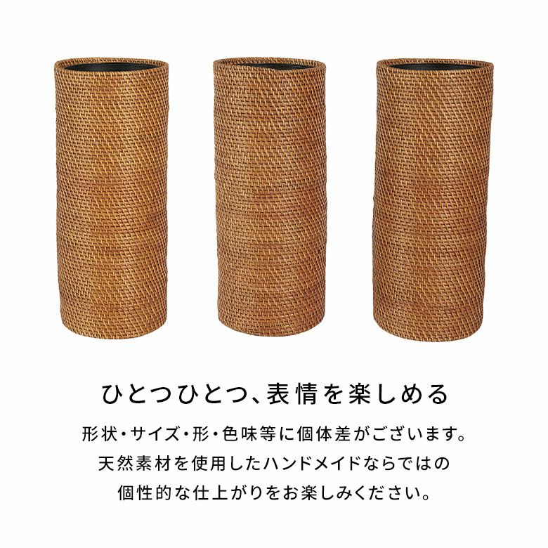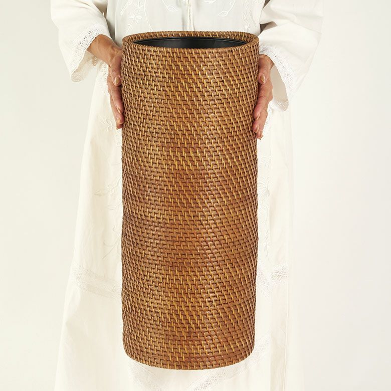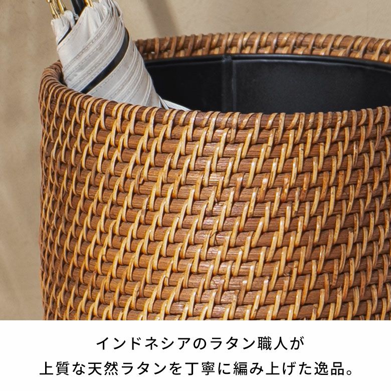 インドネシアのラタン職人が、上質な天然ラタンをひとつひとつ丁寧に編み上げた傘立て。