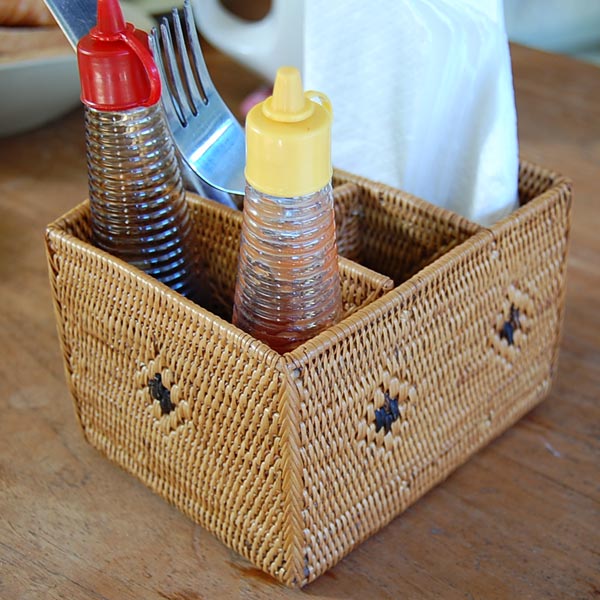 おしぼり置きやカトラリーケースなど、他のアタやラタンのアイテムと組み合わせて
