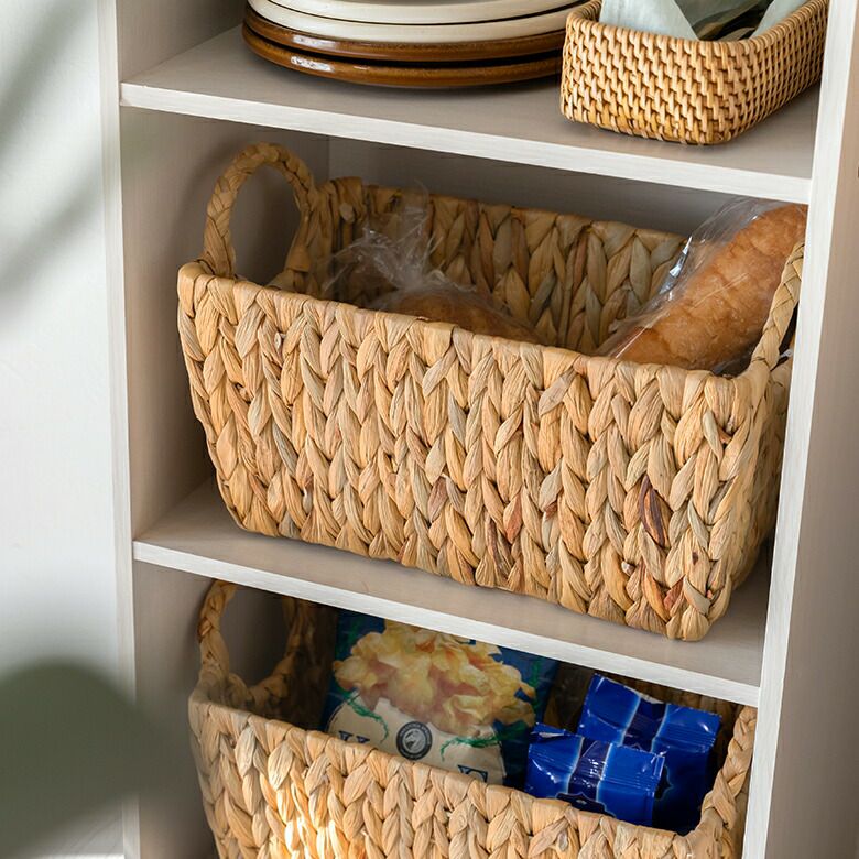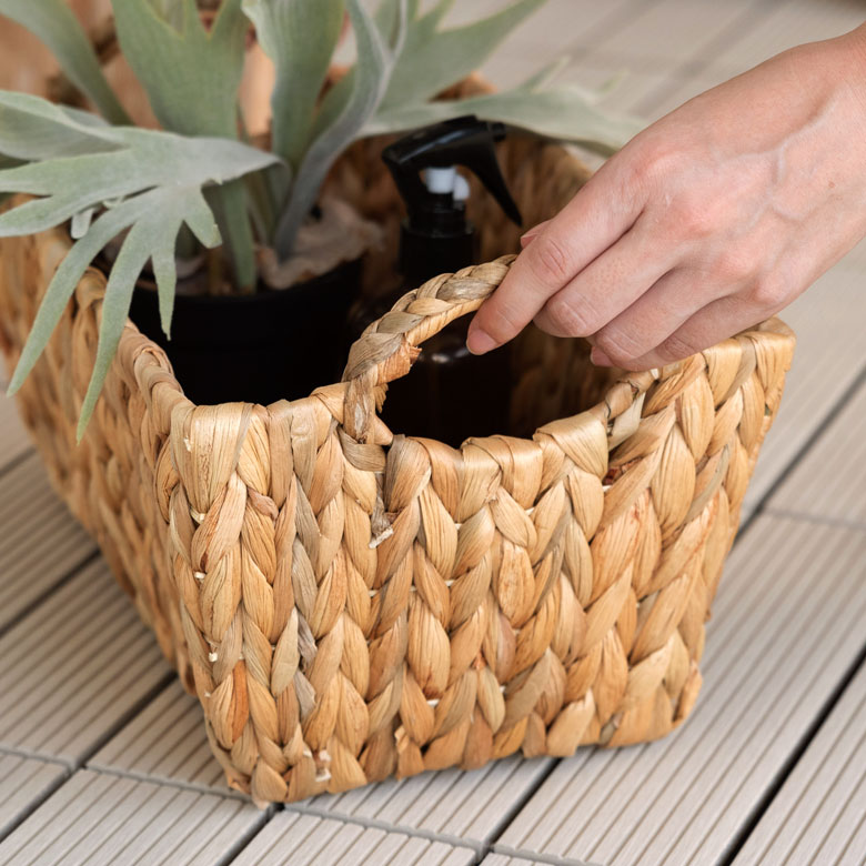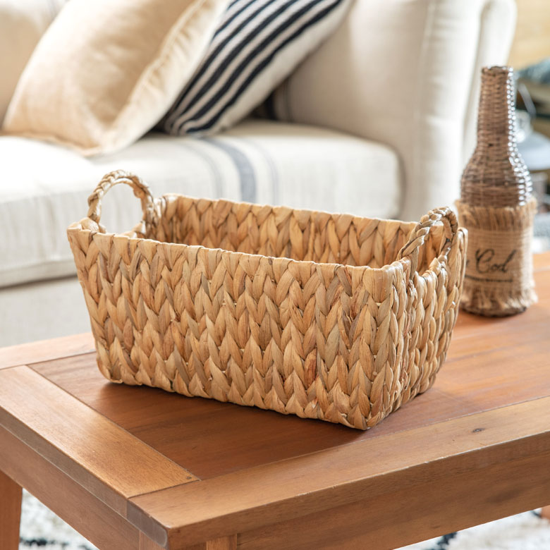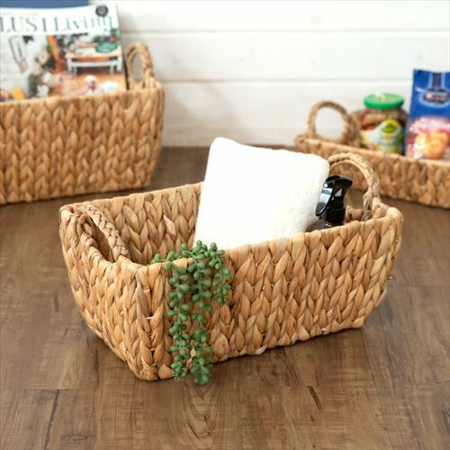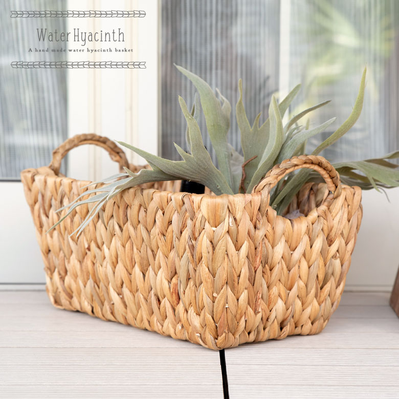 四角い形で使いやすい、ウォーターヒヤシンスのバスケット。 天然素材のナチュラルで優しい質感。