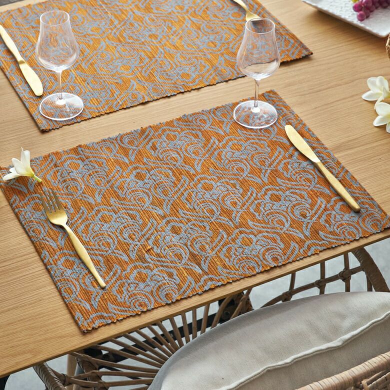 職人がひとつひとつ丁寧に編み込んだ、アジアン柄のランチョンマット。