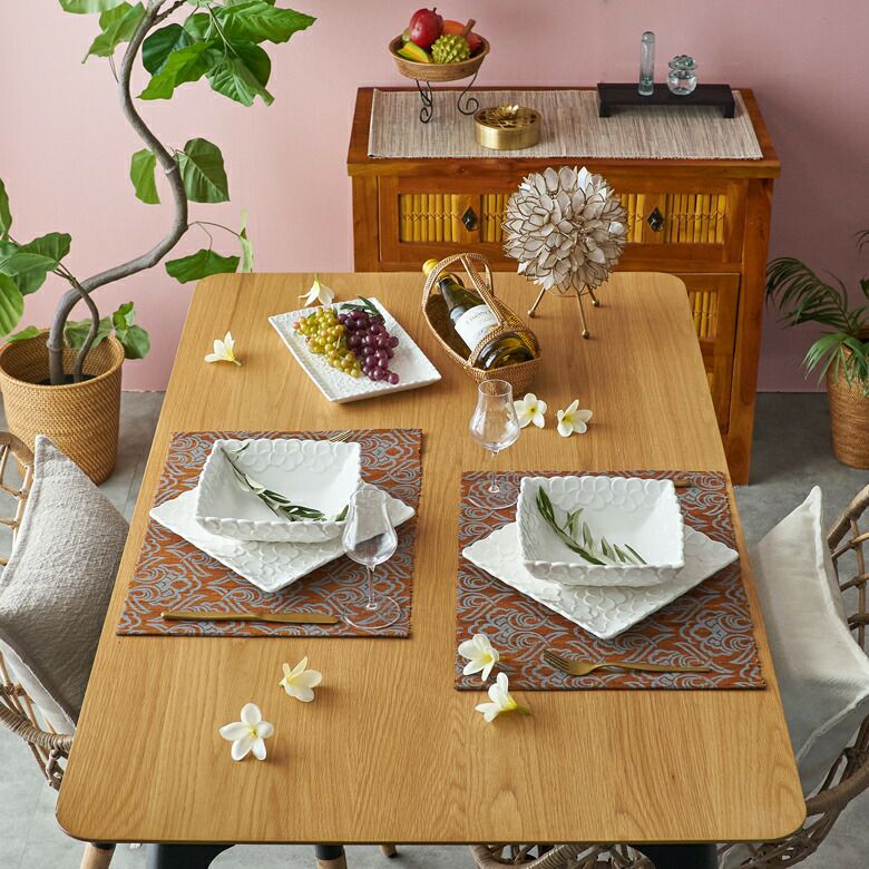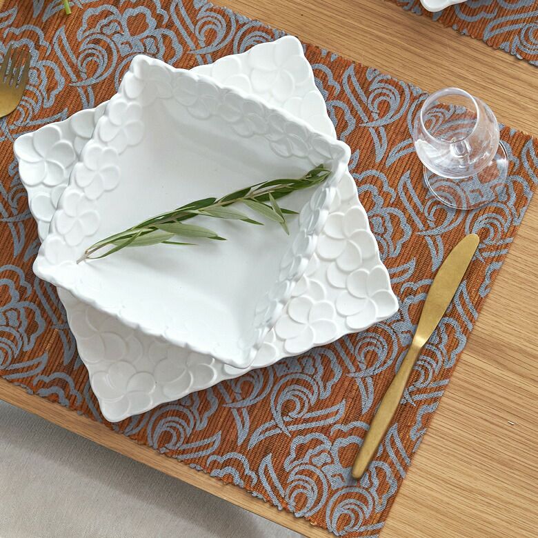 存在感のあるアラベスク柄プリントは、いつもの食卓を華やかに仕上げてくれます。