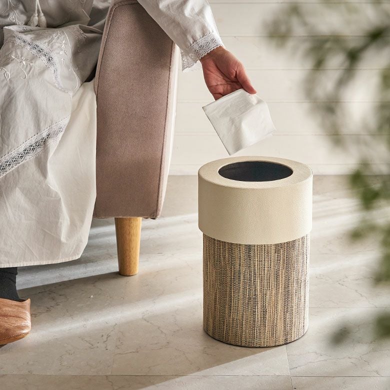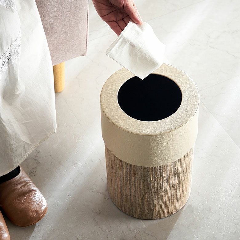 パンダンとレザーのゴミ箱 [丸型] |