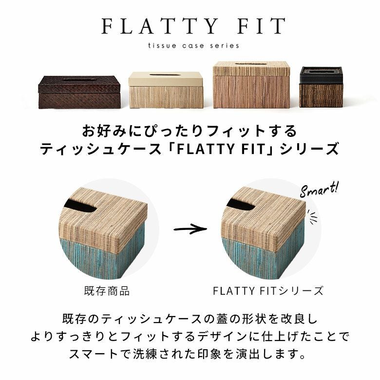 選べる天然素材と、豊富なサイズ展開であなたのお好みにぴったりフィットするティッシュケース【FLATTY FITシリーズ】が新登場!