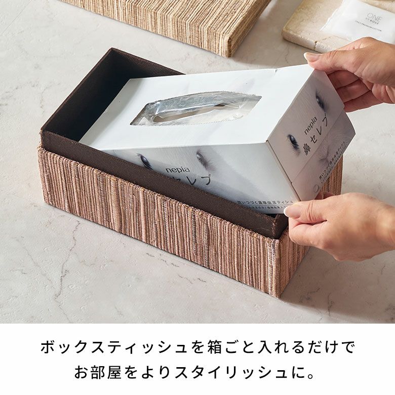 ・ボックスティッシュを箱ごと入れるだけで、生活感のないお部屋へ