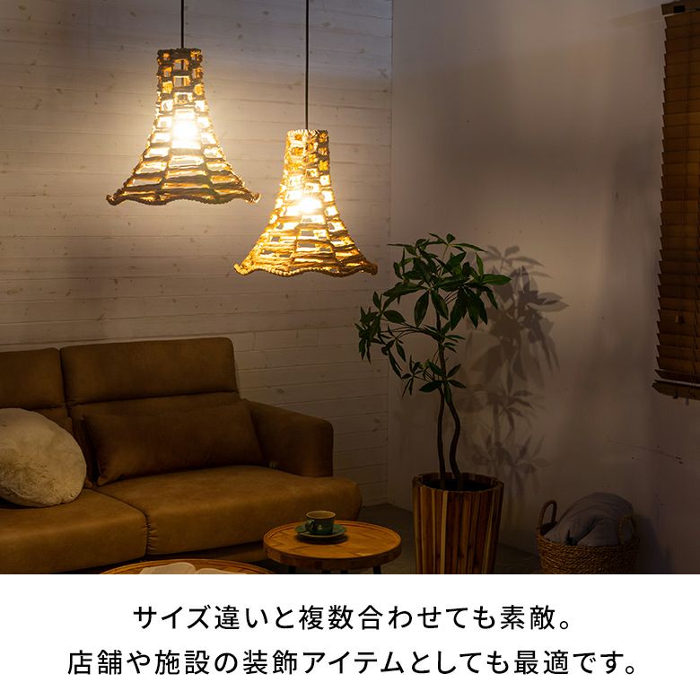 幅42cmのほどよいサイズ感で、ひとつでお部屋のメイン照明にするのはもちろん、複数個を贅沢に並べても素敵。店舗や施設の装飾アイテムとしても最適です。