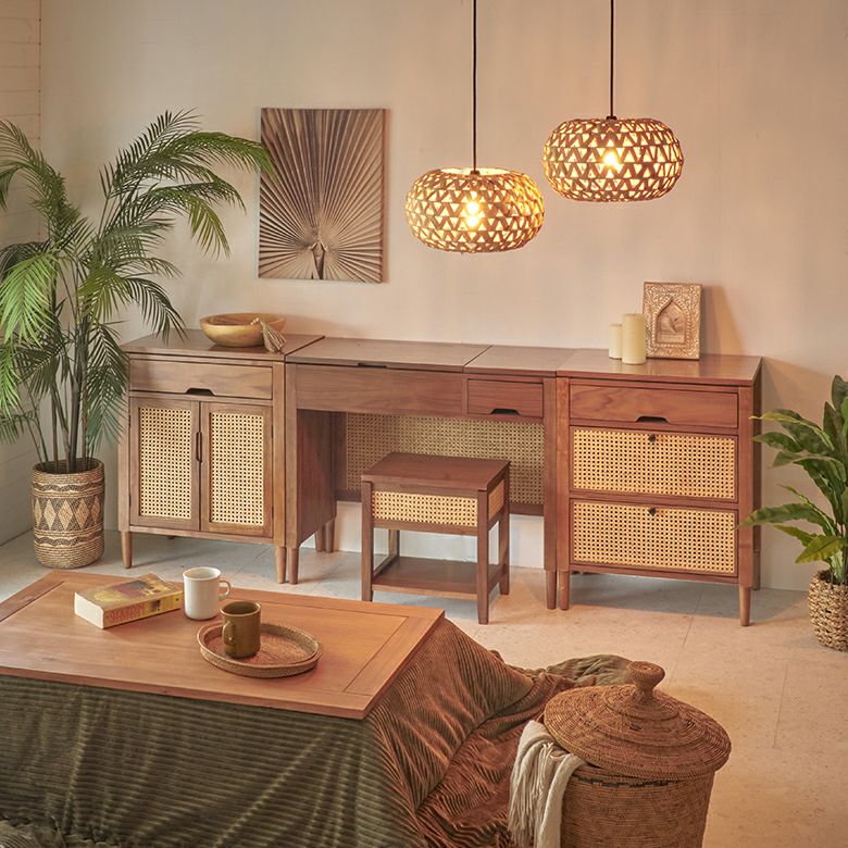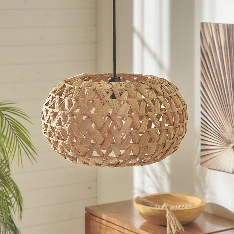 BOHOスタイル:ウッド、ラタン、ジュートなど自然素材を多用したインテリアにも、ウォーターヒヤシンスの照明はアクセントとして活用できます。温かみのある素材が、どんなスタイルにも柔らかさを加えます。