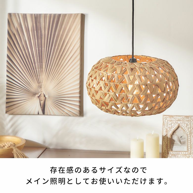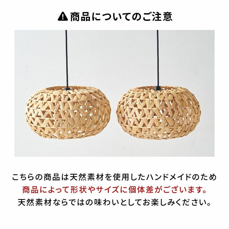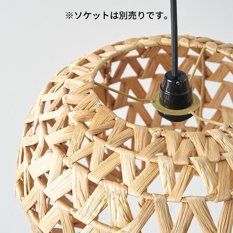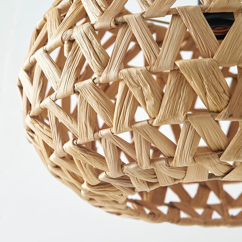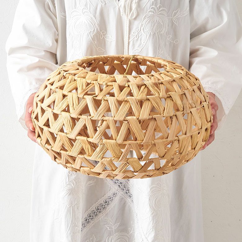ベトナムの職人がひとつひとつ丁寧に編み上げ、ウォーターヒヤシンスの柔らかさを保ちながらもしっかりとした形状を維持して完成させました。自然素材ならではの雰囲気は、リゾート感を演出するのにぴったり。存在感のあるサイズなので、リビングやダイニング、寝室でメイン照明としてお使いいただけます。ホテルやアジアンテイストのカフェなど、店舗用の吊り下げ照明としてもおすすめです。