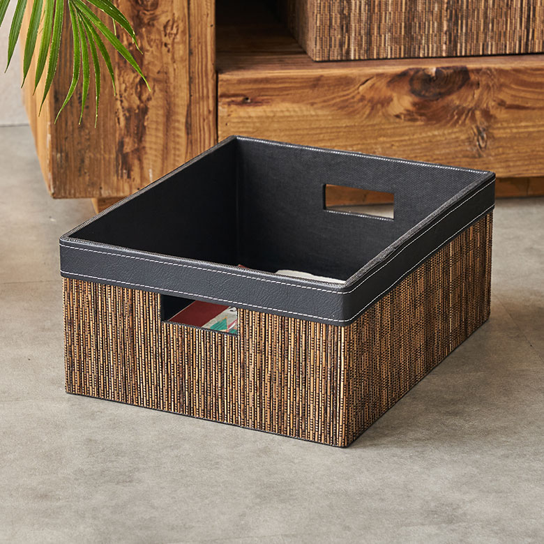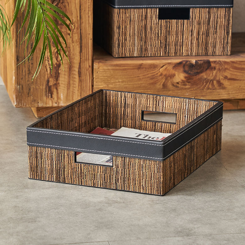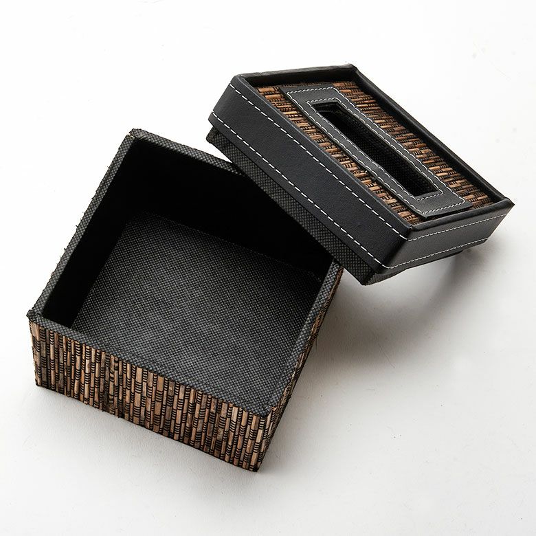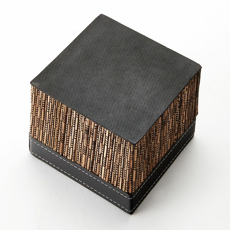自然の風合いが絶妙で、フチの部分を飾っている合皮のブラックやブラウンの部分が