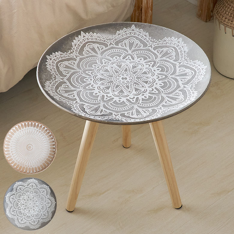 モロッカン柄×天然木 サイドテーブル |