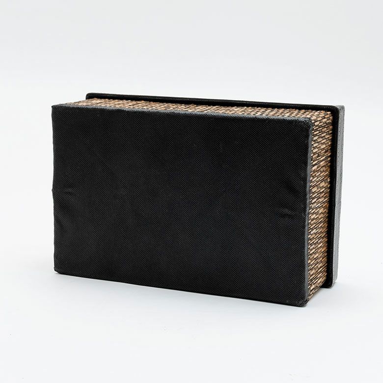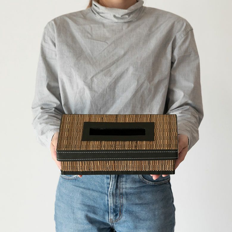 自然の風合いが絶妙で、フチの部分を飾っている合皮のブラックやブラウンの部分が