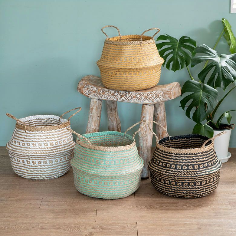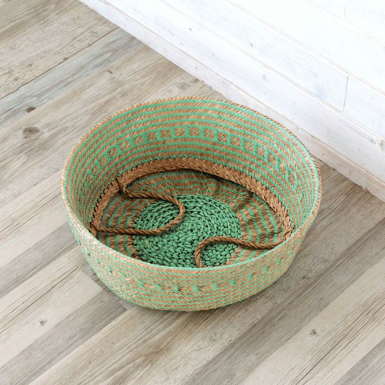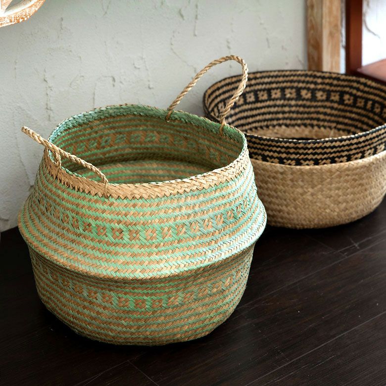 柔らかくしなやかな天然素材、シーグラスの大きめバスケット。