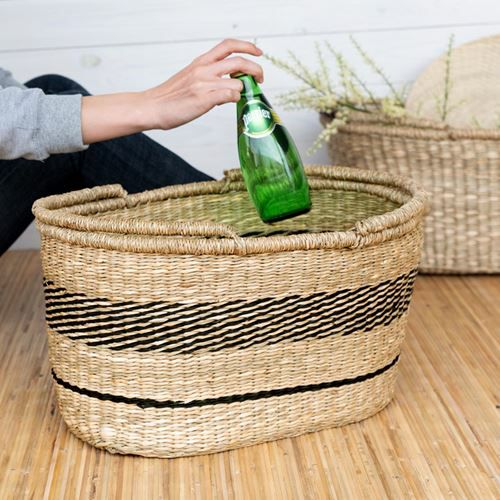 シーグラス(天然水草)を使い、1点ずつ丁寧に手作業で編み上げました。