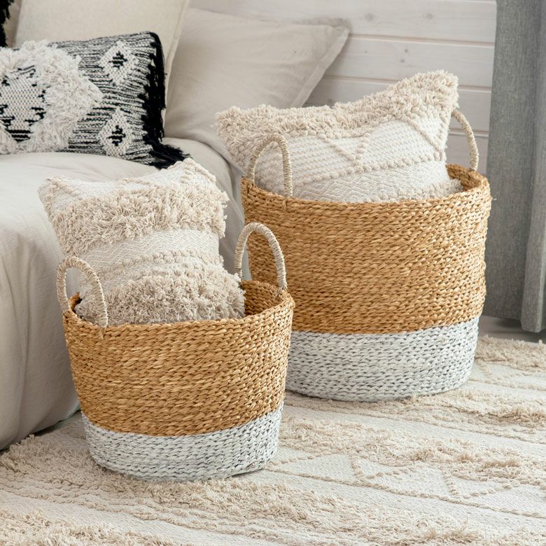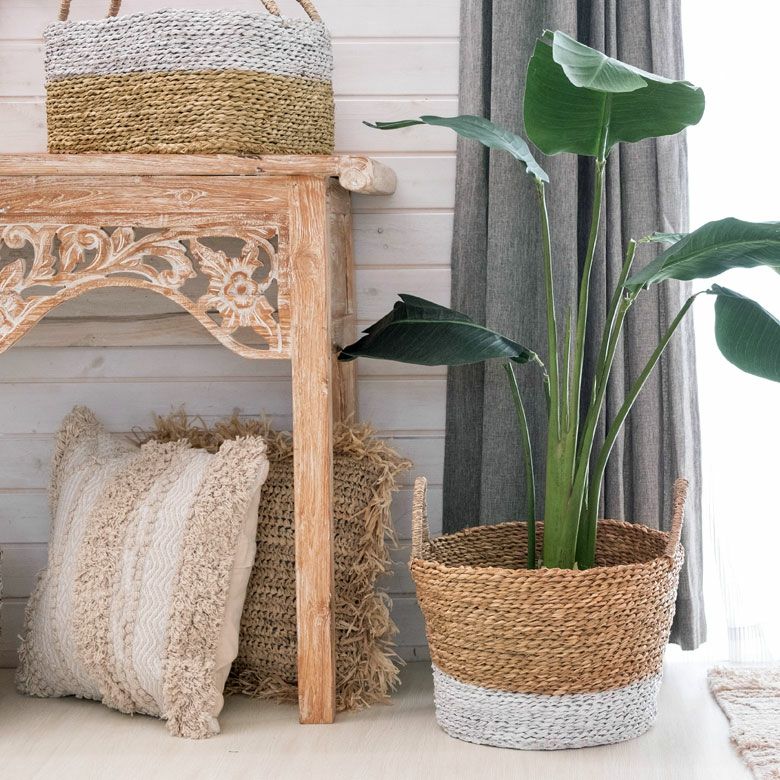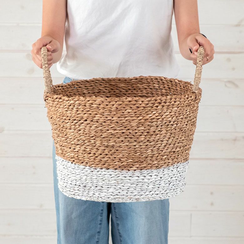 ナチュラル×ホワイトのバイカラーデザインの爽やかなバスケット。