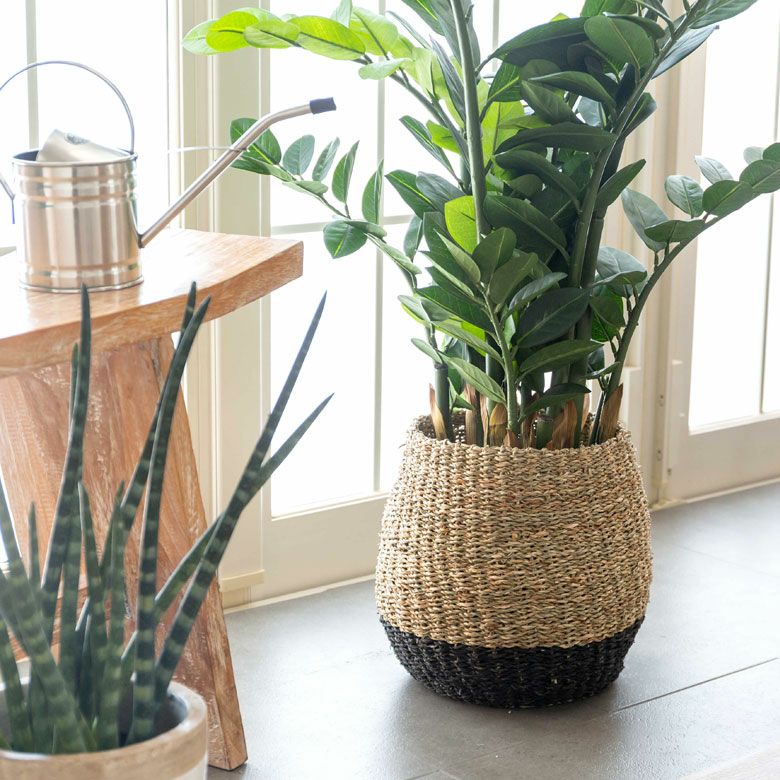 ・天然素材の優しい色合いと、ブラックのコントラストが美しく、観葉植物を引き立てます