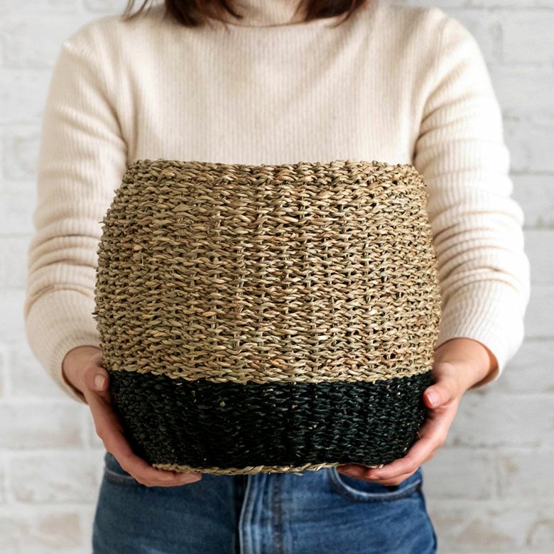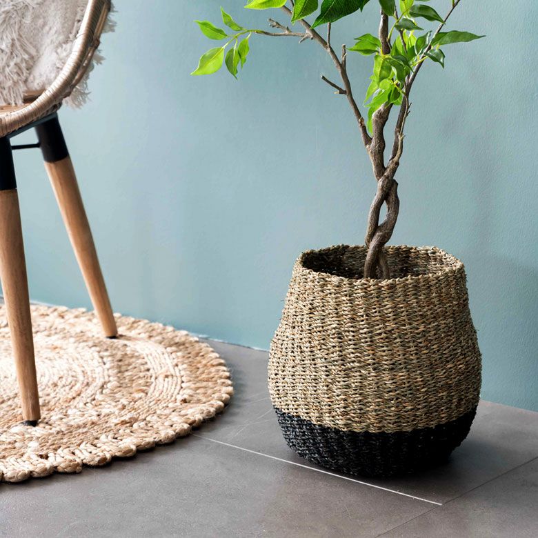シーグラス(天然素材)を編んで作られたプランターカバーは、
