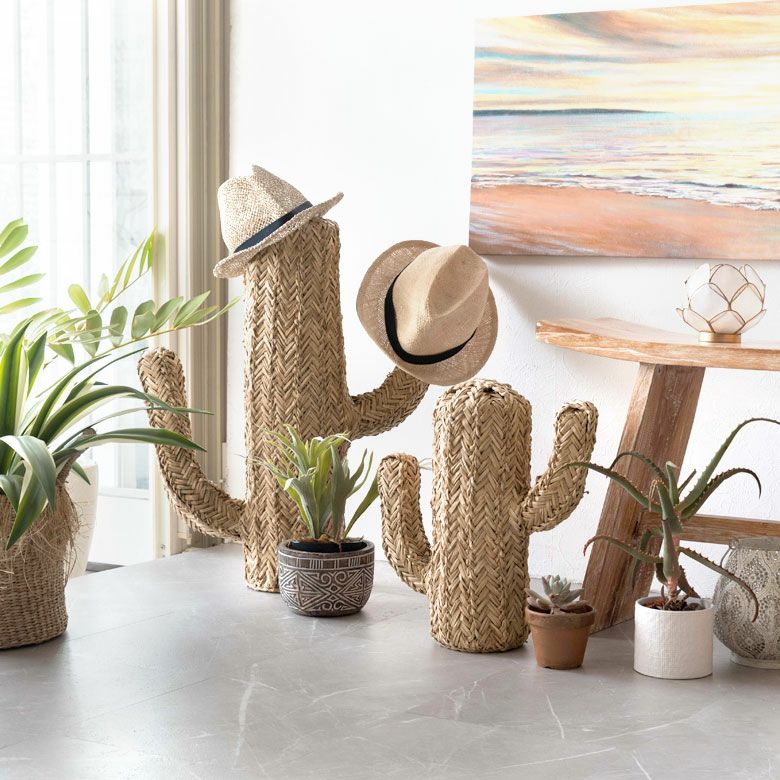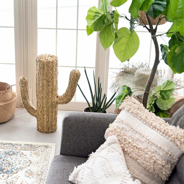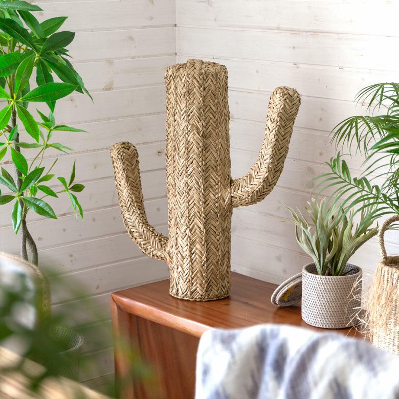 シーグラス(天然水草)で編まれた、ざっくりとした質感のサボテンオブジェ。