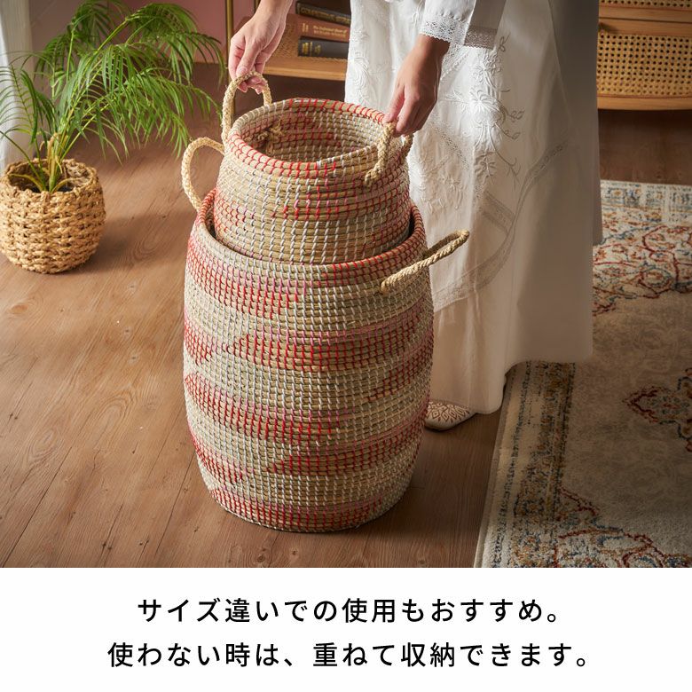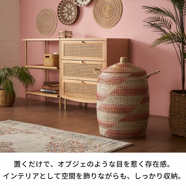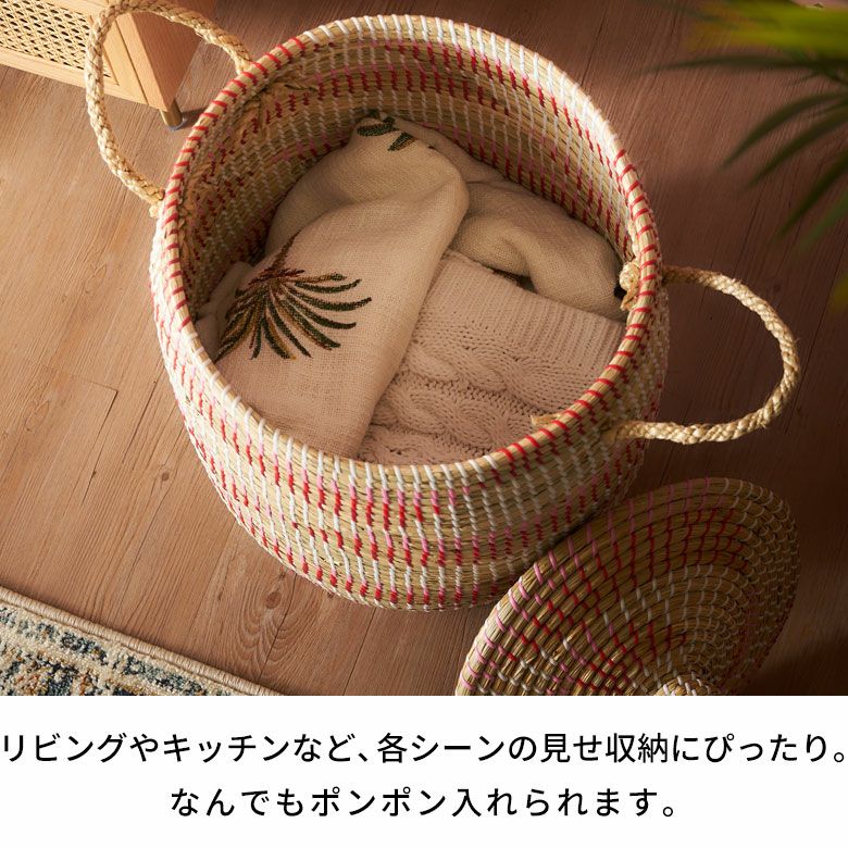 インテリアとして空間を飾りながらも、しっかり収納できるバスケットです。