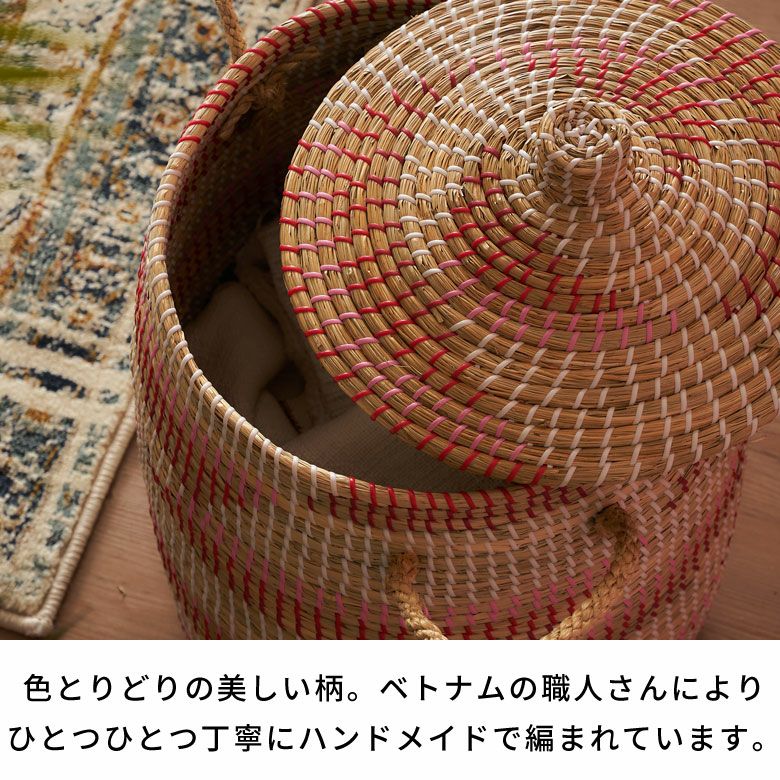 ベトナムの職人さんにより、ひとつひとつ丁寧にハンドメイドで編まれています。