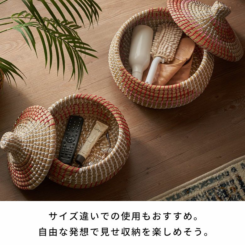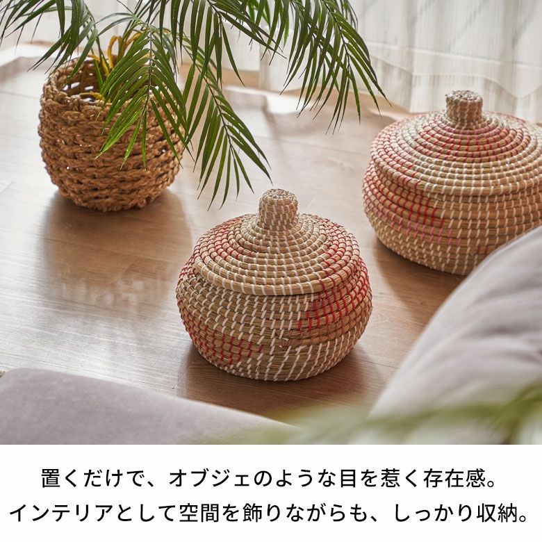 インテリアとして空間を飾りながらも、しっかり収納できるバスケットです。