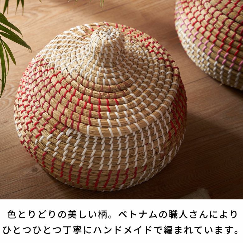 ベトナムの職人さんにより、ひとつひとつ丁寧にハンドメイドで編まれています。