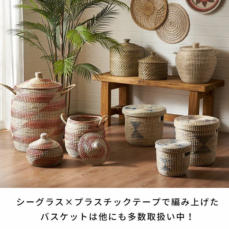 まだまだ他にもある!シーグラス×プラスチックテープで編み上げたバスケットシリーズ。