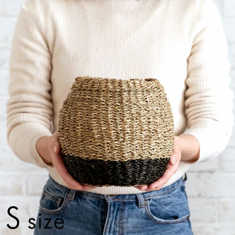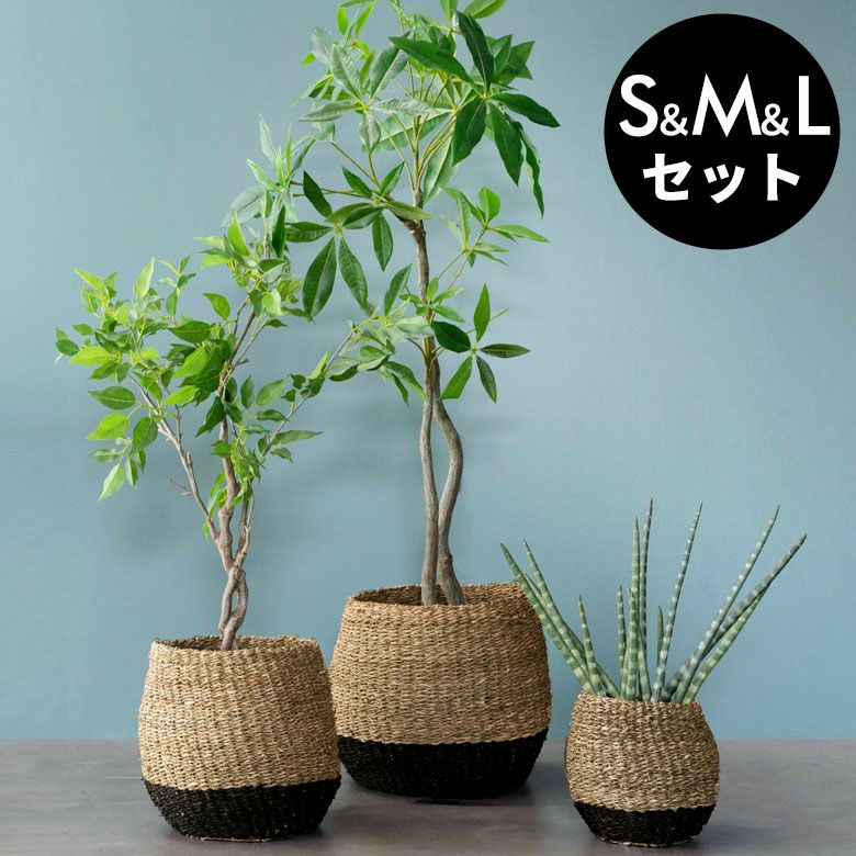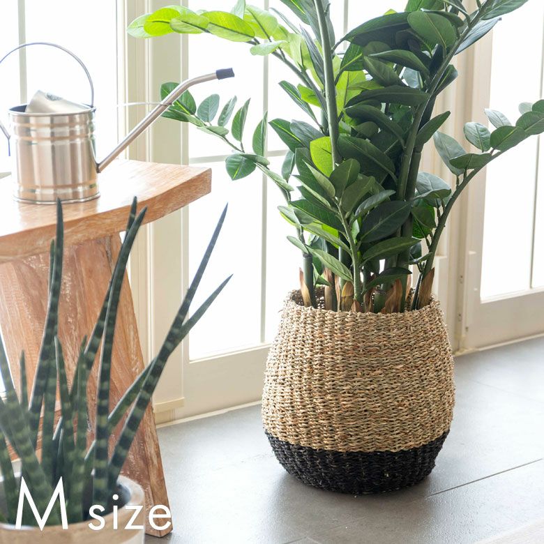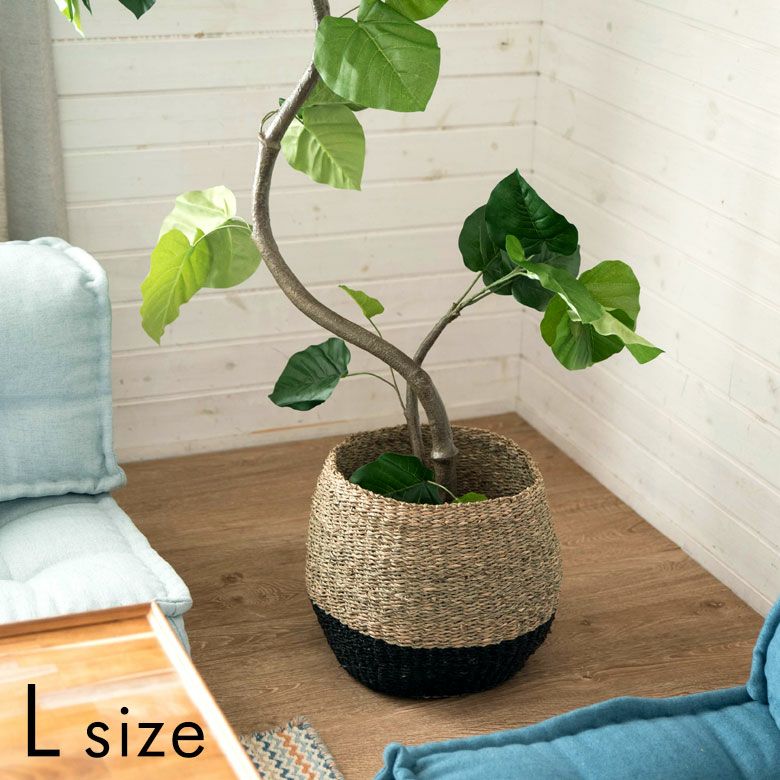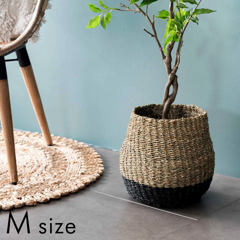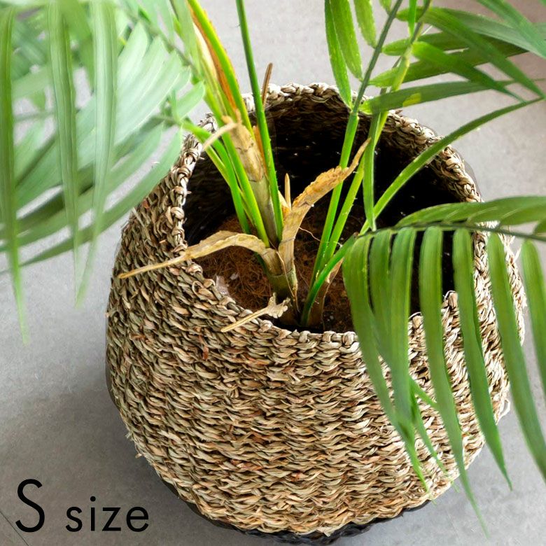 シーグラス(天然素材)を編んで作られたプランターカバーは、