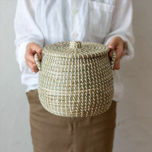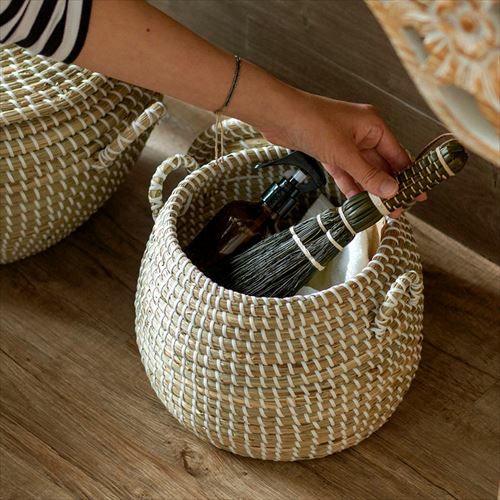 ひとつひとつ手作業で作られた、シーグラス製バスケット。