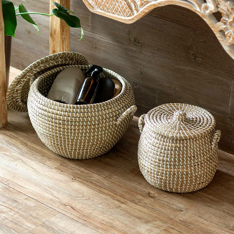 ひとつひとつ手作業で作られた、シーグラス製バスケット。