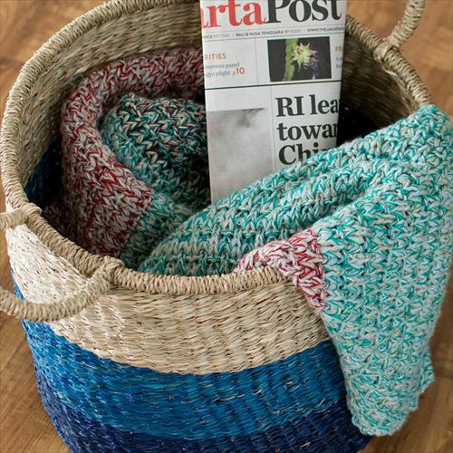 3色のグラデーションが美しい、大きめサイズのバスケット。