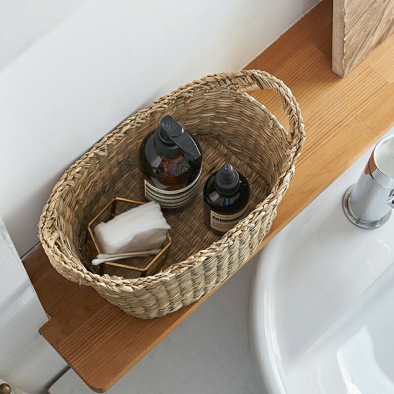 ハンドルがデザインのアクセントになった、可愛らしいバスケット。