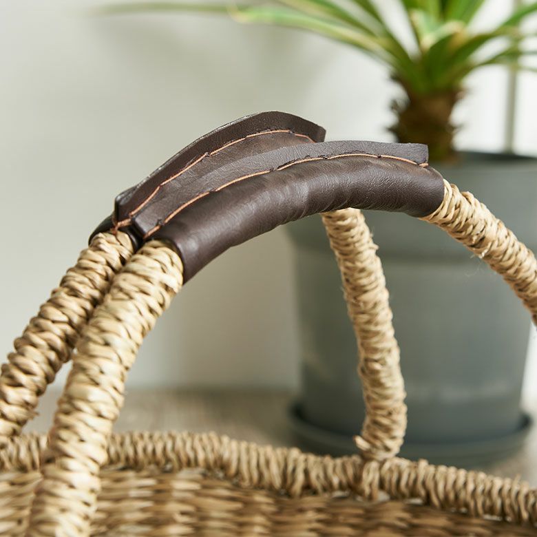 シーグラスで編まれたハンドル付き