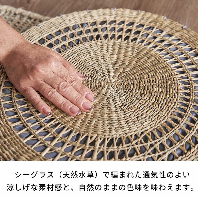ほどよい厚みとやわらかなクッションで座りやすいシーグラスで編まれた丸いアジアン座布団 [vn5098]