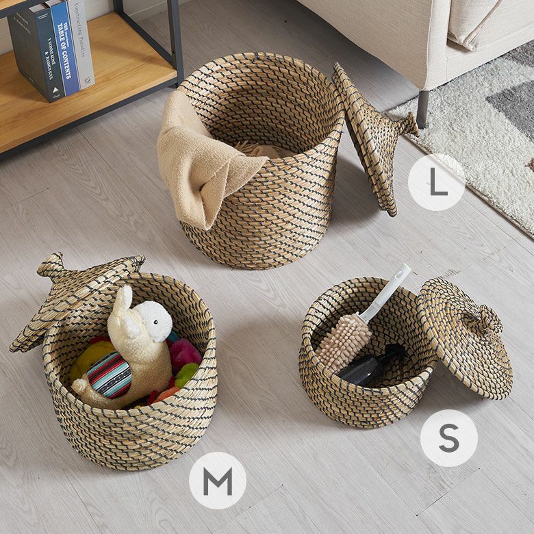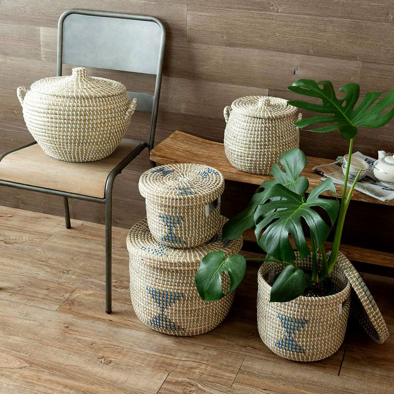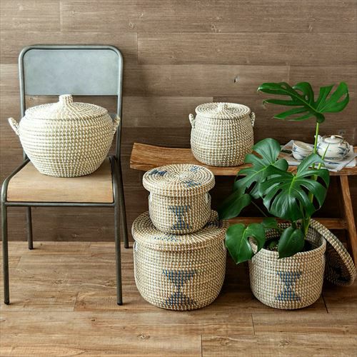 カゴ かご ゴミ箱 ごみ箱 フタ ふた 蓋 つき 付き リビング 店舗 カフェ レストラン おもちゃ入れ アフリカン アフリカ ベルベルバスケット セネガルバスケット アフリカンバスケット バスケット ふた付き かごバスケット ポット シーグラス 3点セット S M L ナチュラル 収納 蓋付き シーグラスバスケット 収納バスケット ダストボックス 荷物入れ 荷物かご おしゃれ 北欧 リゾート 雑貨 インテリア アジアン雑貨 アジアン 雑貨 [vn50575-set]