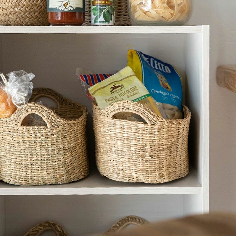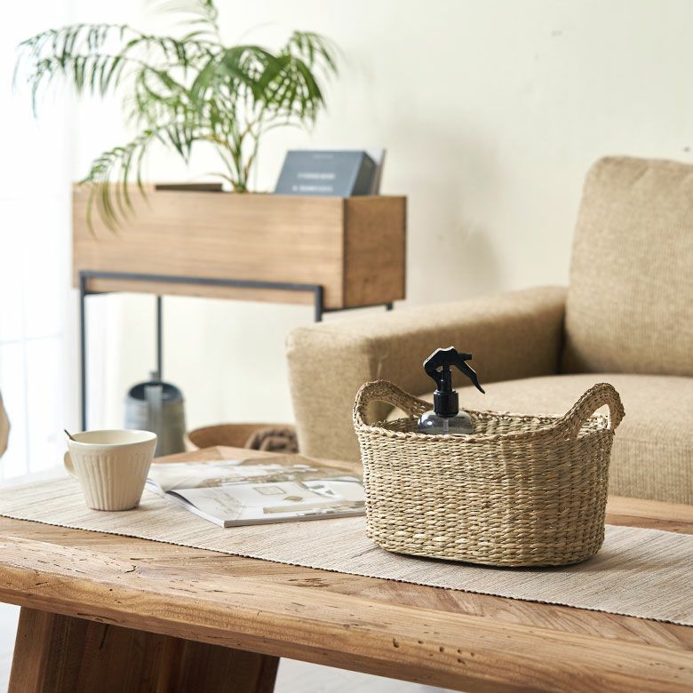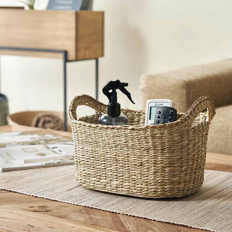 収納バスケット シーグラス ハンドル付き 天然素材 ハンドメイド バスケット かごバスケット シーグラス製 収納 小物入れ かご カゴ バスケット 持ち手つき オーバル型 ナチュラル キッチン収納 パン お菓子 野菜入れ 収納カゴ カラーボックス 雑貨入れ バリ雑貨 エスニック おしゃれ かわいい 北欧 アジアン雑貨 アジアン 雑貨 [vn50577]
