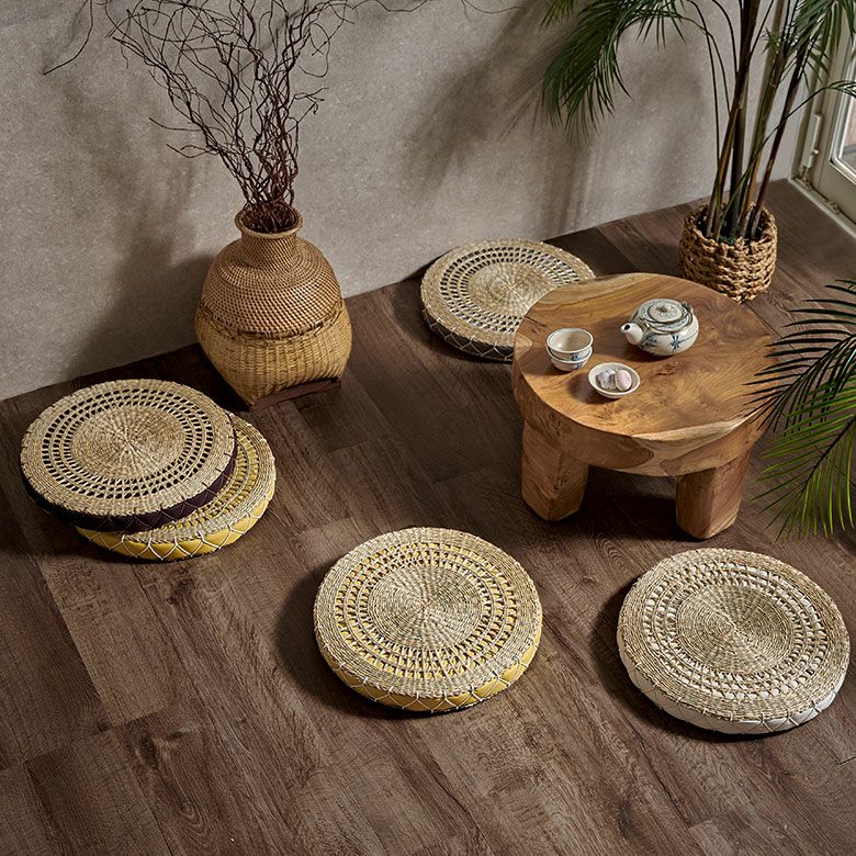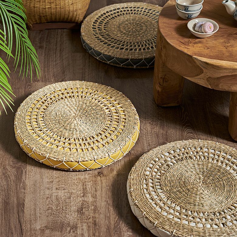 ほどよい厚みとやわらかなクッションで座りやすいシーグラスで編まれた丸いアジアン座布団 [vn5098]